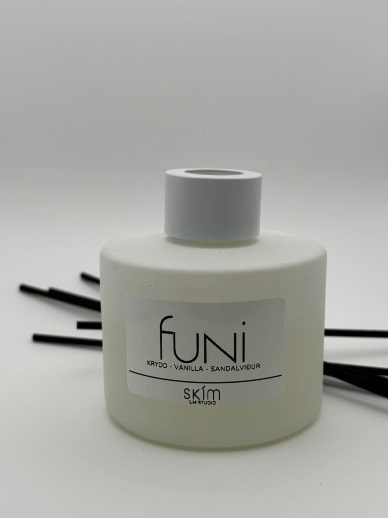 FUNI ilmstráin fylla rýmið af ríkulegum kryddtónum, mjúkum blómum og hlýjum grunni af vanillu og sandalviði.